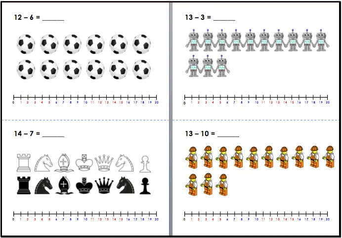 Til hver regnestrategi er det to oppgaver. Elevene må vise at de kan ta bort/trekke fra noe av en mengde, og i tillegg må de løse subtraksjonsstykket på tallinja. Det viktigste er derimot den matematiske samtalen dere har underveis: Hvilken regnestrategi ville du brukt for å finne svaret? Oppgavene egner seg godt til lærerstyrt stasjon. Det er lurt å ha en oversikt over regnestrategiene dere har lært liggende på stasjonen, slik at det blir lettere for elevene å sette ord på det de tenker.
