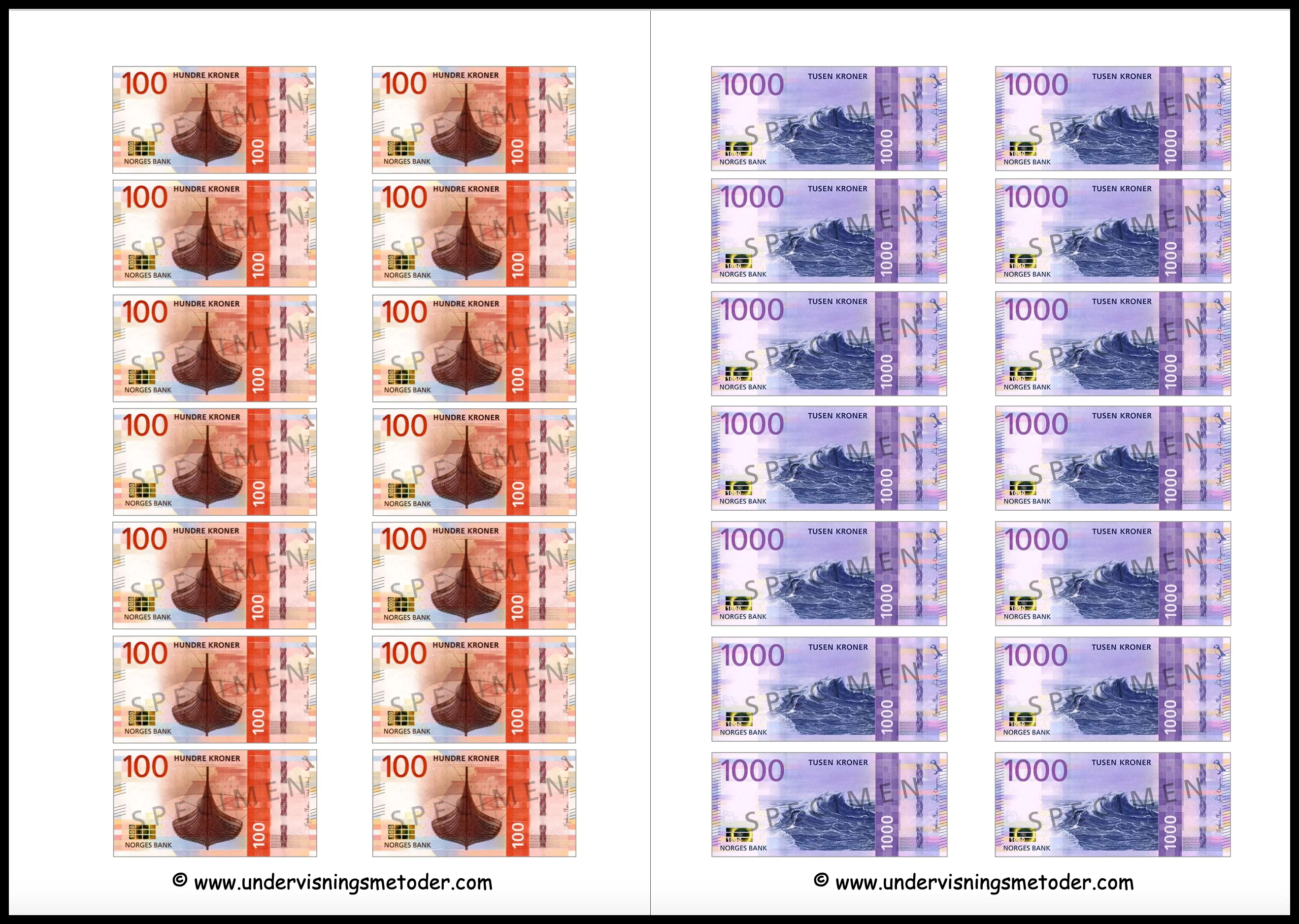 Dette er også viktig å ta opp med elevene når man bruker penger i undervisningen. Pengene er forminsket eller forstørret i forhold til originalstørrelsen fordi de ikke skal kunne forveksles og misbrukes. Det betyr altså at å forsøke seg på å bruke pengene til å handle på lokalbutikken er en svært dårlig ide.