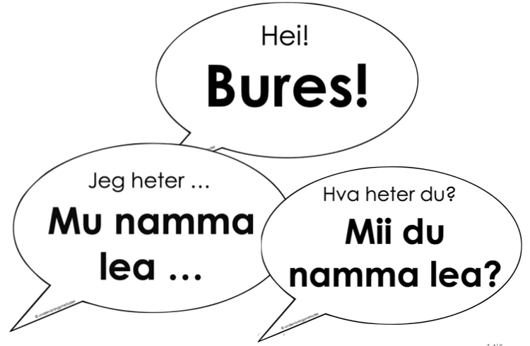 På forhånd printer du ut snakkeboblene. Du velger selv hvilke du ønsker å bruke. Start med å fortelle om samiske språk. Deretter får elevene se youtube-videoene hvor de får lære enkle fraser selv. Snakkeboblene henges opp på tavla, eller et godt synlig sted i klasserommet. De fungerer som læringsstøtte.