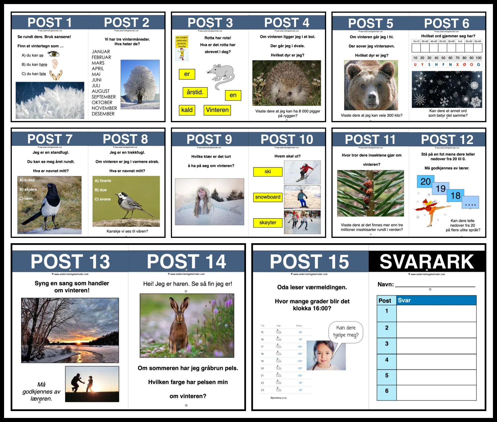 VINTER: Dikt, forsøk, kryssord, natursti, hentediktat, lese-skrive-og regneoppgaver og mye mer!