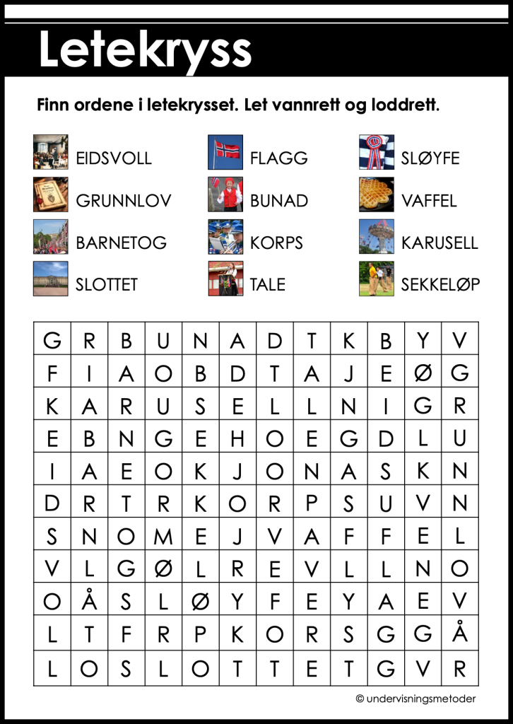 Kryssord 1 (løsningsord: grunnlovsdag)