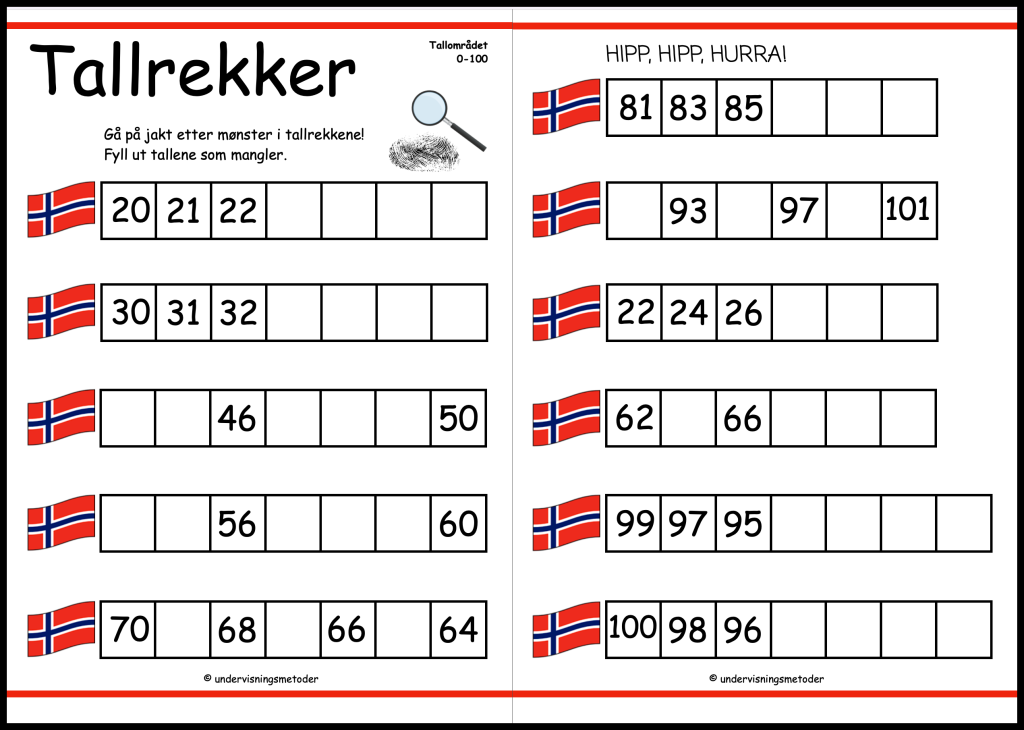 Tallrekker 0-100, telling/mønster og sammenhenger