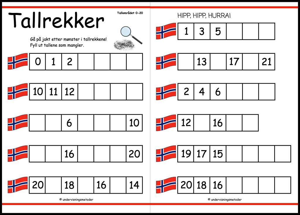 Tallrekker 0-20, telling/mønster og sammenhenger