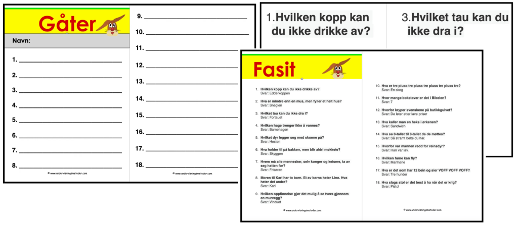 PS: Elevene ville ikke gi seg før de hadde klart å finne svaret på alle gåtene, men du kan naturligvis også velge å gi en tidsramme i forkant.