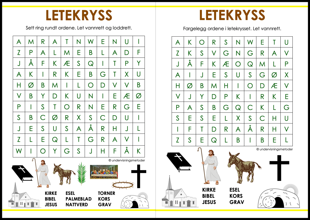 - OPPGAVE 2: PÅSKEFORTELLINGEN – esel, krokus, palmeblad, Jesus – krokus skal ut, fordi det er det eneste ordet som ikke er med i påskefortellingen