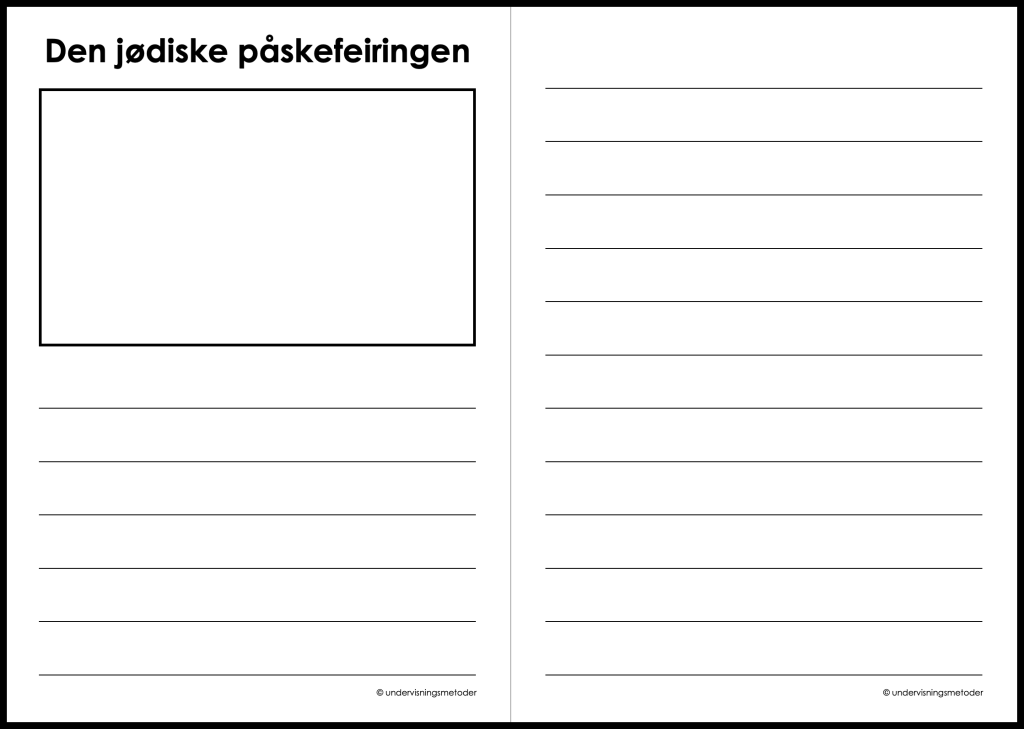 Tegne- og skriveoppgave: Skriv en tekst der du forteller det du har lært om den jødiske påskefeiringen. Velg om du vil bruke kun fremsiden, eller begge sidene.