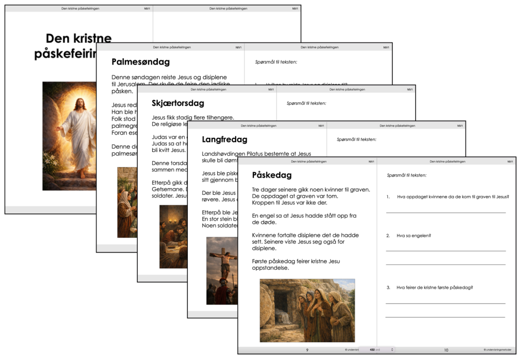 Den kristne påskefeiringen – Nivådelte lesetekster med spørsmål, 3 nivå
