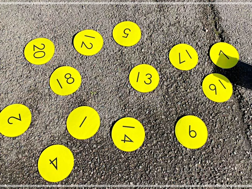 Jobb sammen to og to. Læreren legger tallkortene utover på bakken (tallkort finner dere på siden MATEMATIKK-Tallkort og tallplakater).