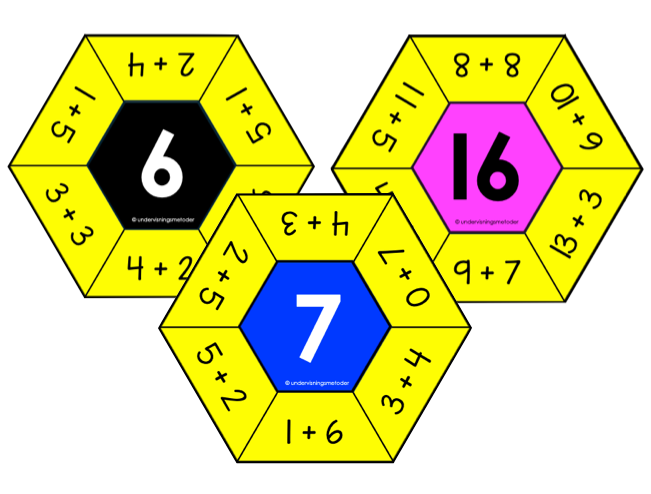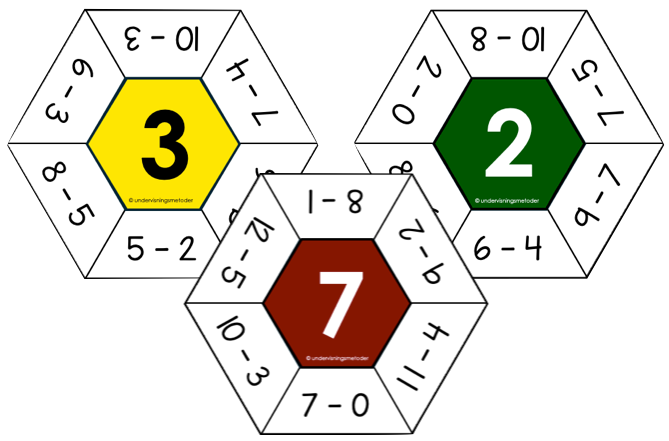 Denne samlingen med sekskant-formede puslespill er også godt egnet til å øve på regnestrategien “telle nedover”.