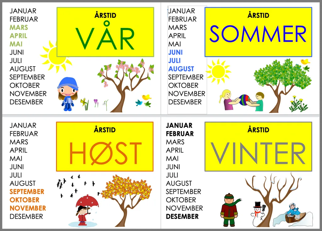 I Norge har vi fire årstider: vår, sommer, høst og vinter.
