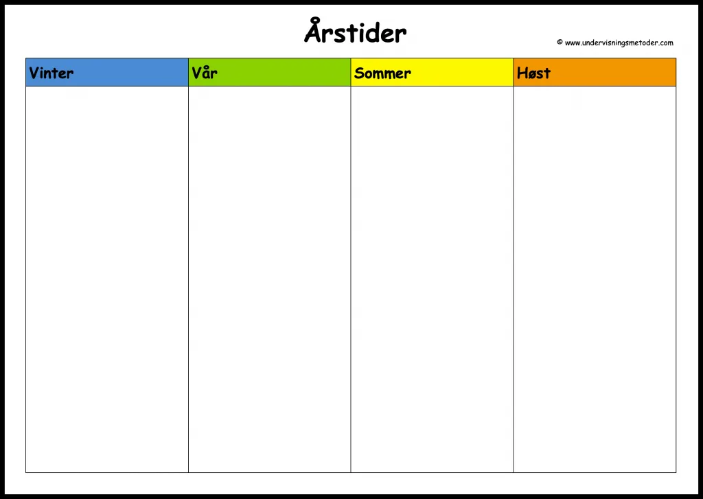 Årstidene er et tema elevene vet mye om fra før, uansett alder. Derfor passer det fint å starte timen med å lage et felles tankekart for å aktivere forkunnskaper.