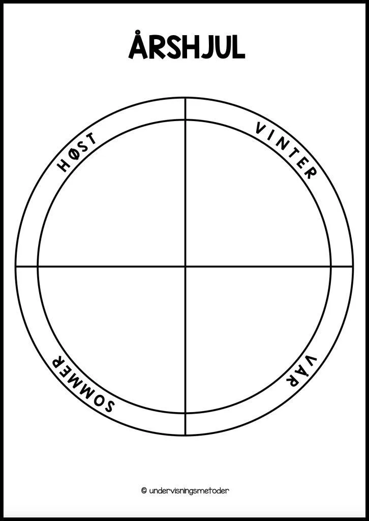 Om dere ønsker kan dere klippe ut og lime det på en papp-plate eller lignende for å få en tykkere bakgrunn. Klipp rundt kantene og heng årshjulene opp i klasserommet.