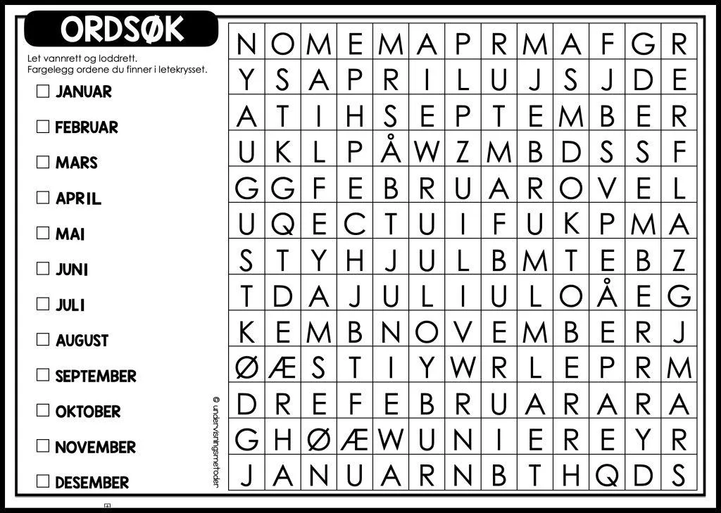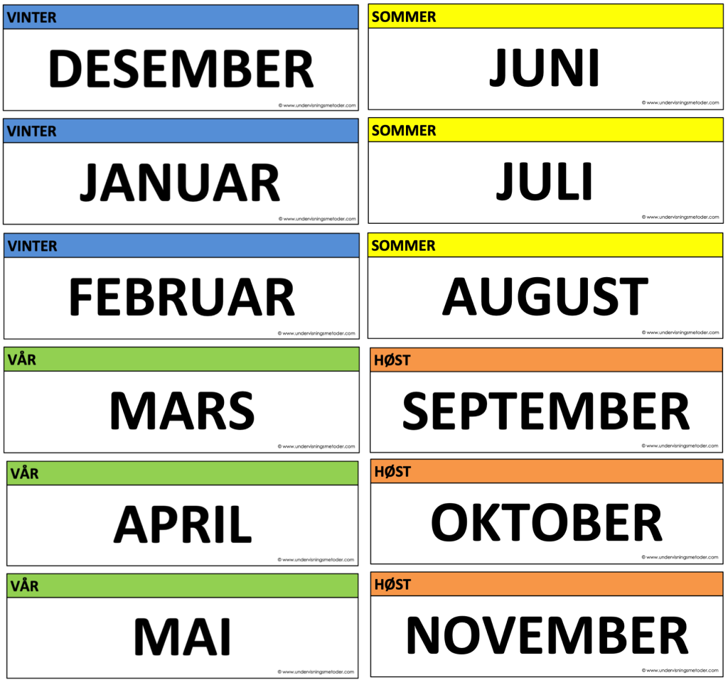 -Måneder (kalender, bursdager, still opp-aktivitet, huskeregel, m.m)