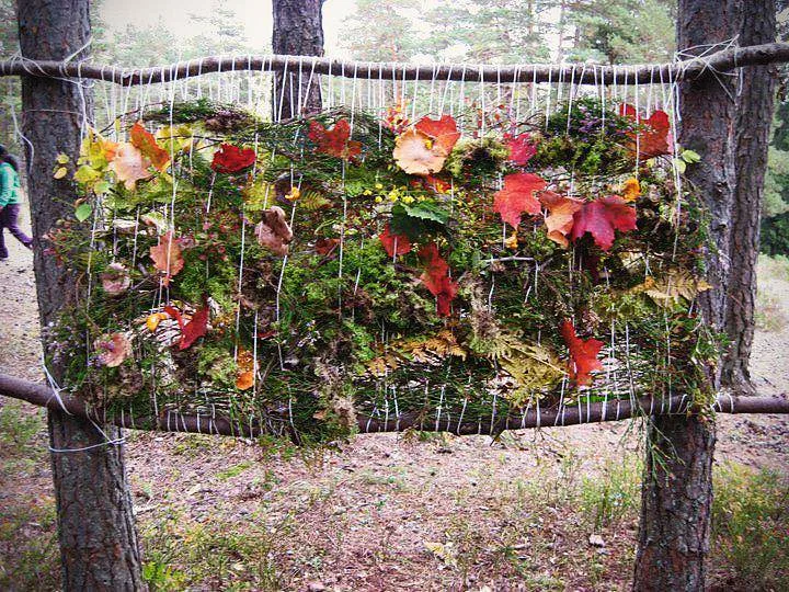 Fra uteskole-tur i skogen i Groruddalen, Oslo. Elevene laget naturvev ved å bruke det de fant ute i naturen som hadde med høst å gjøre. Foto: Marte Tovsrud.