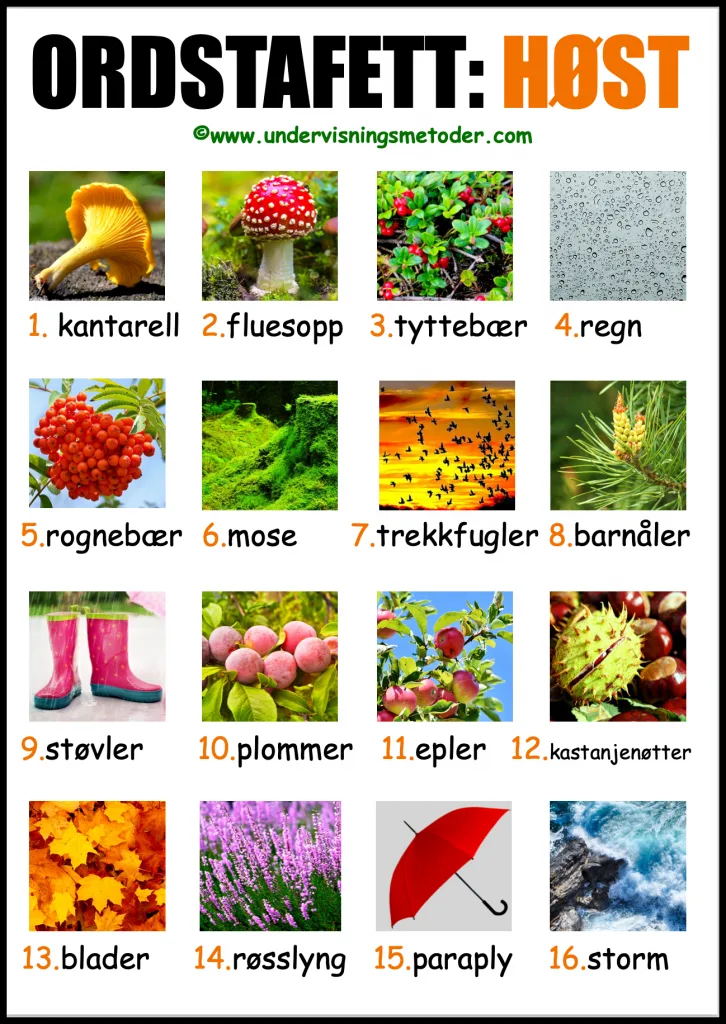 Lær ord og begreper som har med årstiden høst å gjøre på en lekende og morsom måte!