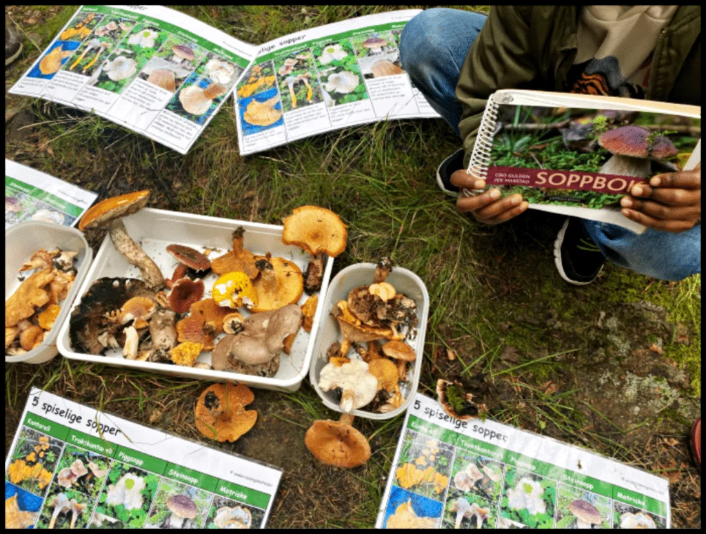 Jeg anbefaler å ta med en soppbok, samt en mobiltelefon med appen “Artsorakel”, slik at dere kan legge inn bilder for å finne navnet på sopper som dere ikke kjenner.