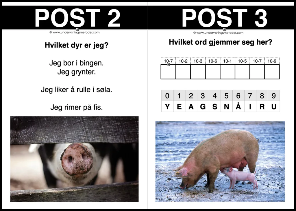 Velg et gårdsdyr dere skal lære om. Lag et tankekart. Ha fremme google på smartboarden for å søke opp bilder å vise underveis for å visualisere det elevene sier, og gjerne også bilder av dyret som kan henges opp på tankekartet. Stopp opp og se en video med fakta om dyret, og fyll på tankekartet etterpå. Hva mer kan dere nå?
