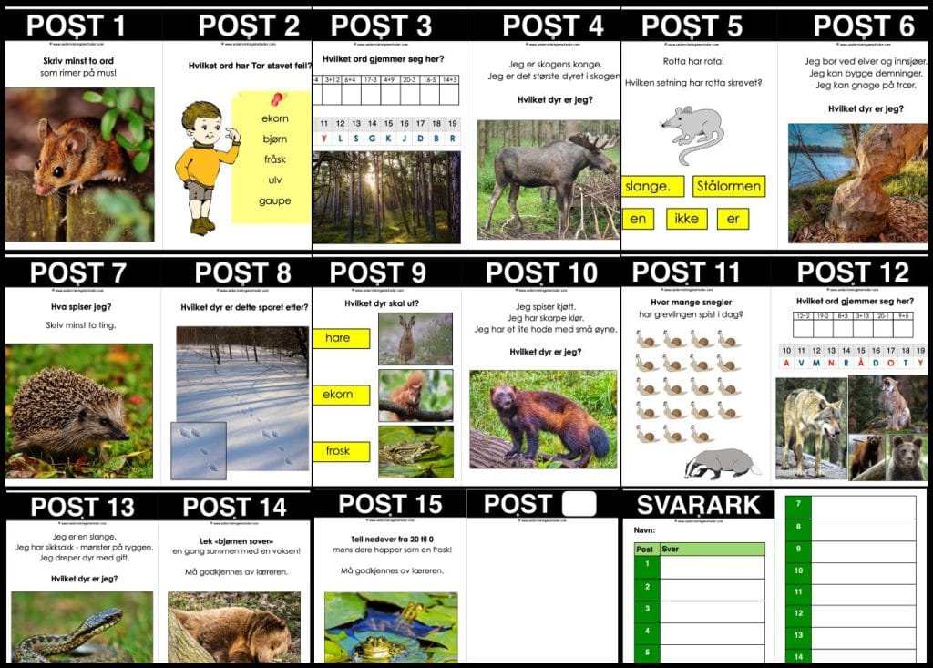 Dette produktet inneholder 21 ulike faktatekster med tilhørende spørsmål om vanlige skogsdyr i Norge: