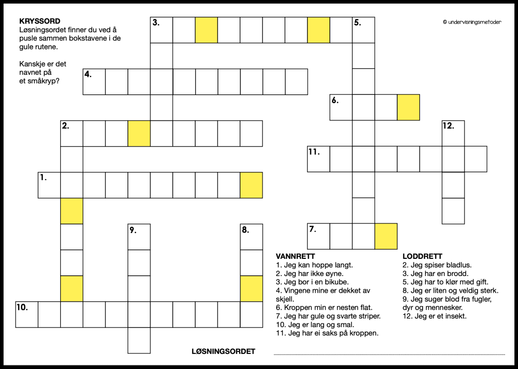 PS: Legg merke til at navnt på hvert småkryp er skrevet med liten forbokstav. Det er fordi elevene skal lære nettopp dette. Stor forbokstav på insekts-og småkrypsnavn bruker vi bare når navnet er først i en setning.