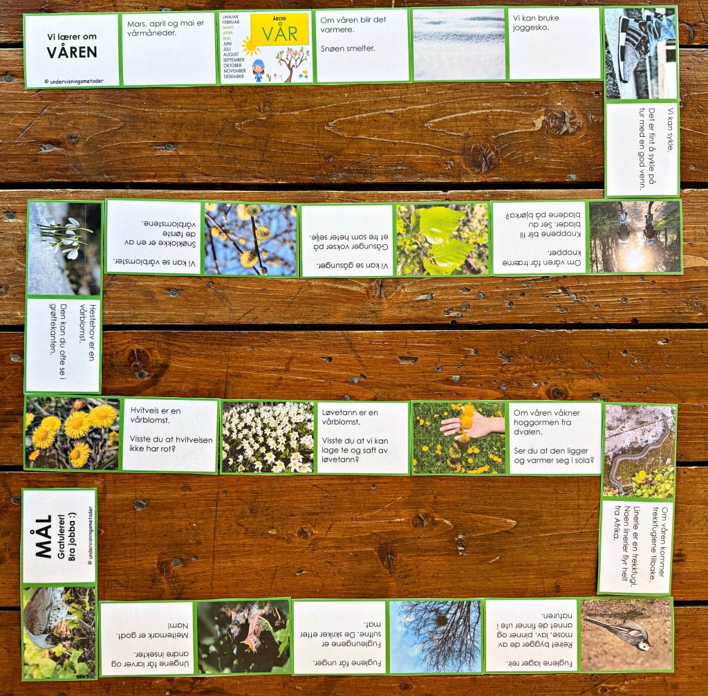 Her får elevene god øving i leseforståelse. Tekstene består av kovrte setninger, og tar for seg viktige ord og begreper knyttet til hver av årstidene. Disse dominoene er også fine å bruke til repetisjon etter hvert som elevene lærer om flere årstider.