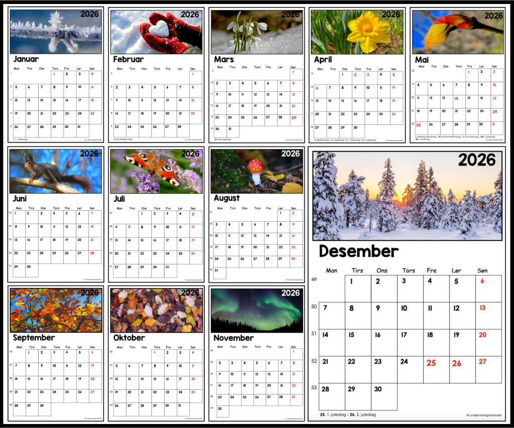 Her får elevene god øving i leseforståelse. Tekstene består av korte setninger, og tar for seg viktige ord og begreper knyttet til hver av årstidene. Disse dominoene er også fine å bruke for repetisjon etter hvert som elevene lærer om flere årstider.