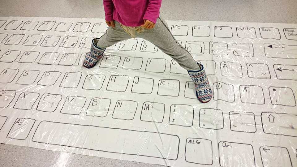 Legg bokstaver på gulvet. Bokstavene skal ligge seks ulike steder i klasserommet. Elevene kaster med en terning. Dersom de får tallet 5, løper de til tallet 5 og henter en bokstav. Når alle bokstavene har blitt hentet skal elevene lage flest mulig ord av bokstavene.