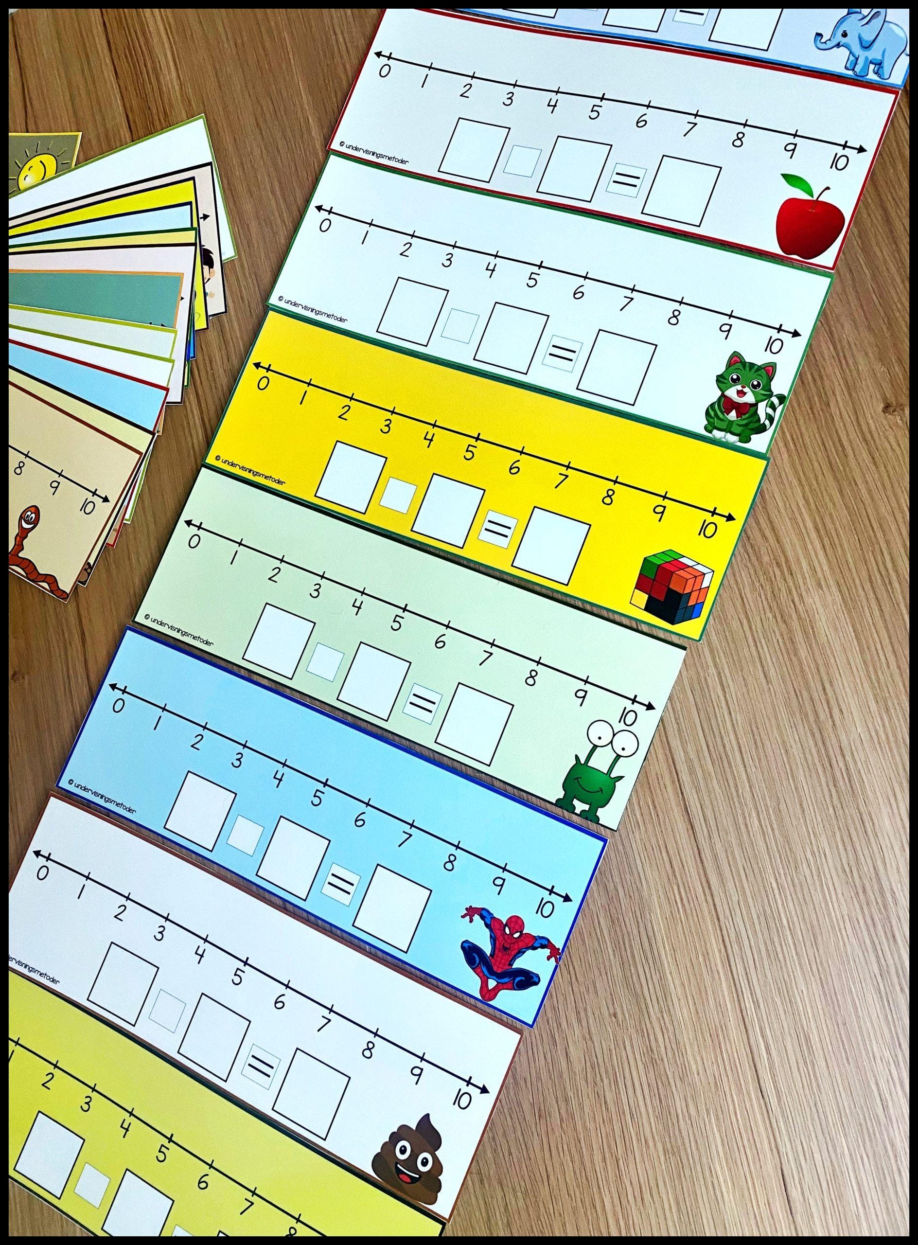 I denne pakken får du tallinjer som viser tallene 0-10. Tallinjene kan teipes på pulten eller deles ut til elevene når de skal jobbe.