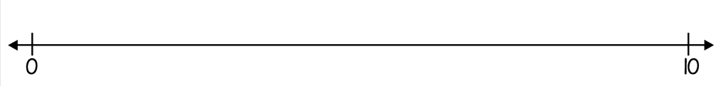 Den andre versjonen viser tallinjen med tallene fra 0-10, i tillegg til ruter hvor elevene kan skrive inn regnestykket de skal finne svaret på. La elevene skrive regnestykkene med markeringstusj, for så å finne svaret ved å hoppe på tallinja. Slik er det enkelt å viske det bort etterpå, for så å skrive et nytt regnestykke.