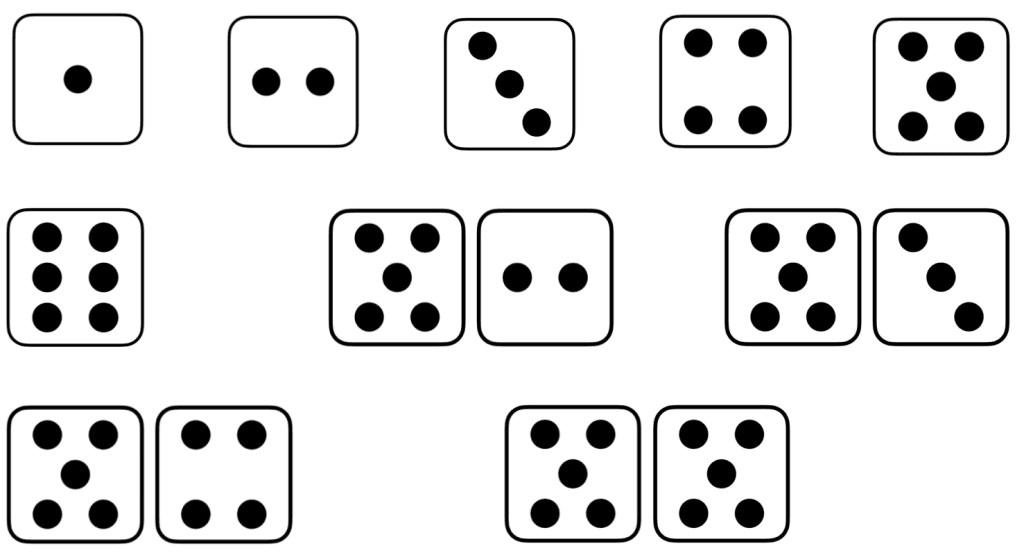 Del elevene inn i lag på 3-4 elever per lag. Hvert lag stiller seg på rekke bak ei linje. På signal fra læreren løper førstemann på hvert lag over til den andre siden, kaster terningene, adderer antallet øyne som terningene viser, for deretter å krysse av tallet på spillbrettet som viser summen av antallet øyne. Hvis tallet allerede er krysset av på spillbrettet, blir det ingen kryss. Etter å ha kastet terningen og krysset av på spillbrettet, løper eleven tilbake til laget sitt. Da er det nestemann sin tur.